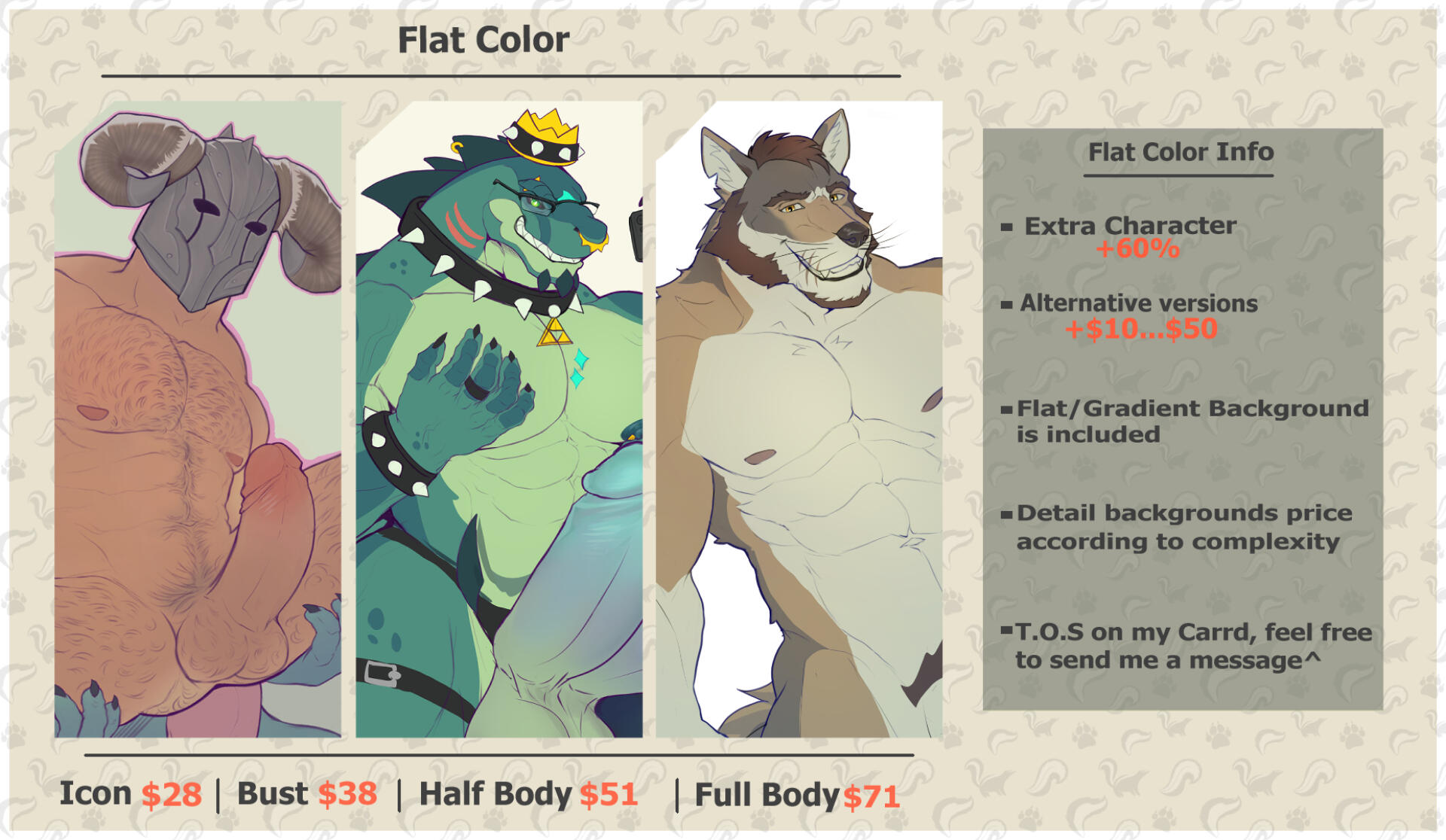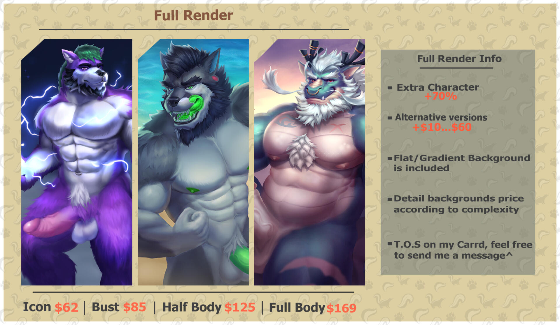 • Prices in USD. Full payment is required before commissions start (payment via PayPal invoice). If the commission price is higher than $100, you can pay half before I start the commission and the second half after I show you the LineArt.•You’ll have up to 48 hours to request a 100% refund. If you cancel after 48 hours, you will receive the lineart and 20-50% will be refunded. Refunds are not possible once the coloring process has started.• I do not make characters from scratch, you have to show me references of you characters, However, don't hesitate to ask, I'm flexible.• You can request up to two minor changes before I start the coloring process. Any additional changes will have an extra charge• I don’t usually do detailed sketches. I start with very basic scribbles and then move into the lineart, where the drawing really takes shape. which is why revisions are done directly on the lineart (I don’t do sketches.)•Drawing will be finished and deilvered within 3 - 8 weeks.•Price could increase if the character has a lot of details/complexity.•Try to be specific in what you want, if you have references of your ideas it would be very helpful.•I can upload finish commissions in my socials to continue growing as an artist. if you don't wanna this to happen, please tell me before start commission⬇️Feel free to contact me via DM.⬇️